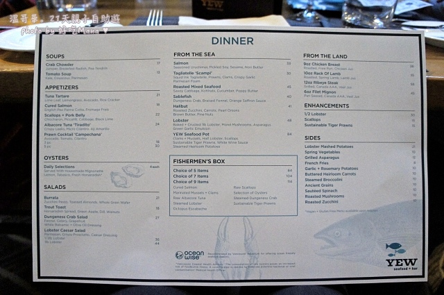 「食記」加拿大。溫哥華-親子旅遊自助21天(19)。YEW seafood + bar(四季飯店二樓)。人氣海鮮餐廳